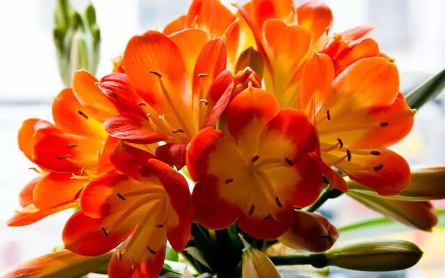 君子兰姿态优美,典雅端庄,既有如碧玉琢成的叶片,又具鲜艳娇美的花容,有极高的观赏价值。同时对净化空气也有显著作用,一株成年的君子兰,一昼夜能吸收1立升空气,释放80%的氧气,保持室内空气清新。