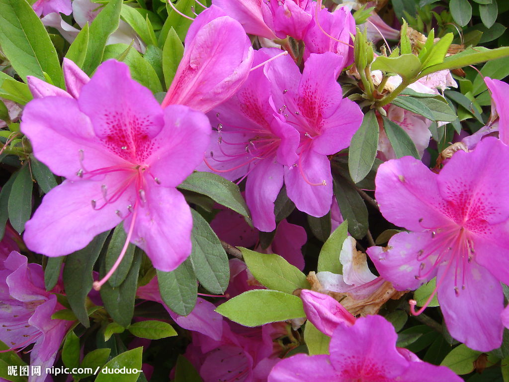 杜鹃花样色多样,常见的有红色、深红色、淡紫色、紫色、白色、玫瑰色等,花瓣也各不相同,单瓣的、重瓣的,花朵大小也不